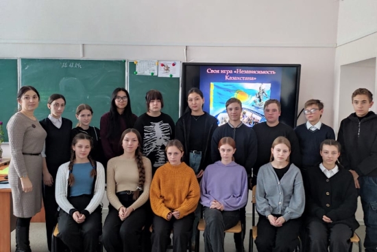 Қазақстанның Тәуелсіздік күніне арналған іс-шаралар жоспары бойынша тарих пәнінің мұғалімі Н.В. Андриенко және тәлімгер Т.В. Сопко 9-11 сыныптар арасында "Тәуелсіз Қазақстан" тақырыбында викторина өткізді.
