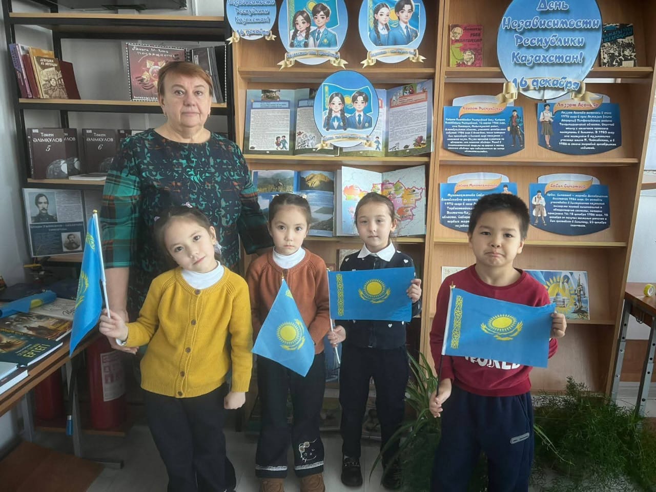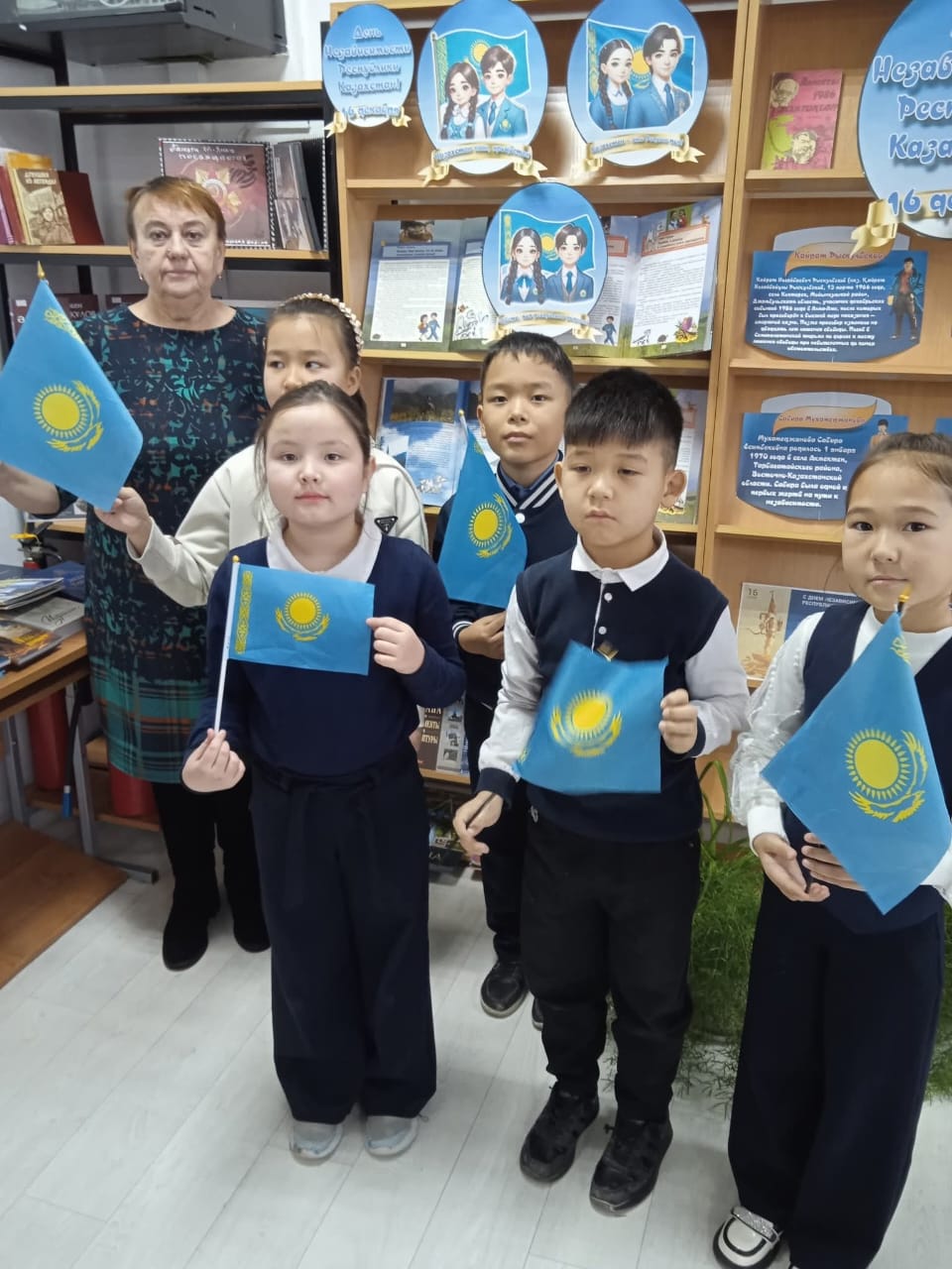 Қазақстан Республикасының Тәуелсіздік күніне орай 1-4 сынып оқырмандары мектеп кітапханашысымен бірге "Қазақстан елі бойынша сиқырлы саяхат" кітабының беттерін зерттей отырып, сиқырлы саяхатқа аттанды. Кітапханашы балаларды елдің географиялық жағдайымен,